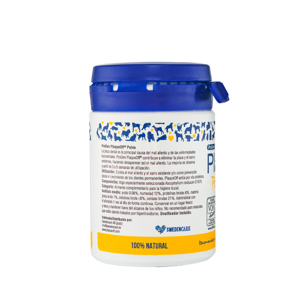 El sarro en perros no solo provoca mal aliento, sino que también puede ser causal de enfermedades periodontales, inflamación de encías, pérdida de dientes e incluso problemas sistémicos, afectando la calidad de vida de tu mascota. PlaqueOff® previene la placa, disuelve el sarro y elimina el mal aliento en perros. Comenzarás a notar cambios en tu mascota desde la 1° semana de uso diario.